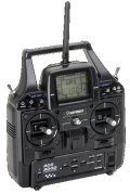 RC transmitters have two joystick controls which affect the first 4 channels (elevator, ailerons, throttle and rudder). There may also be extra switches and dials for extra channels. In Australia, we mostly use "Mode 1" controls which means that the throttle is on the right-hand joystick (Mode 2 has the throttle on the left and is used in USA).