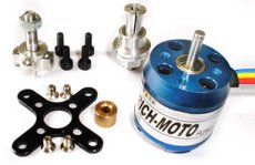 Some brushless motors are supplied with extra hardware to allow the propeller to be connected to the rotating body so that the motor may be connected to the forward side of the firewall. The picture at the left shows one of these.