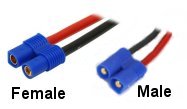 These connectors are a good high-power plug for battery connections and brushed motor connections. They have a firm grip and excellent connectivity in all conditions. Battery leads will be terminated with a female Deans plug (to avoid short circuit when storing). |