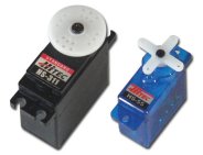 Servos are used to control the mechanics (control-surfaces, landing gear, etc.) of the aircraft and come in a variety of sizes and types. Manufacturers use terms such as "giant", "standard", "mini" and "micro" to help describe the overall size. The main two types differ in their internal gearing: nylon or metal. Metal gearing (and bearings) will generally be stronger but you also pay more for them. Most RC flight usage will be fine with nylon gearing.
