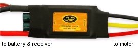 There are two types of electronic speed controllers (ESC) as there are two type of motors: brushed and brushless. Brushed speed controllers have two wires going to the motor and brushless have three. They are not interchangable. Most speed controllers also have a battery elimination circuit (BEC) built in. The BEC allows for the saving of battery power for the servos (aircraft control) when the battery runs low. It does this by either throttling back the motor or competely cutting it off (with an in-flight restart available).